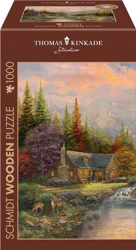 Laagste prijs € 33,00 voor Schmidt Spiele Holzpuzzle - Bergkulisse mit Bach - 1000 Teile. is gemeten op 07-02-2026.