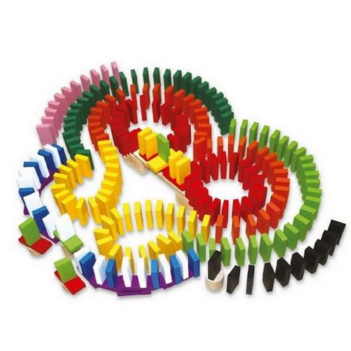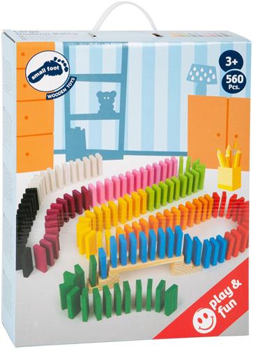 Met deze maxi set maak je een super lange domino rally. De set bevat 560 houten stenen in vrolijke kleuren om de domino baan van je dromen mee te maken.