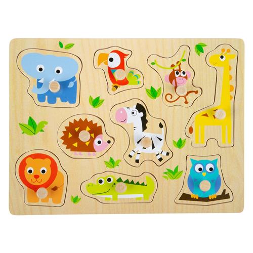 Small Foot - Houten Noppenpuzzel Dierentuin, 9st.