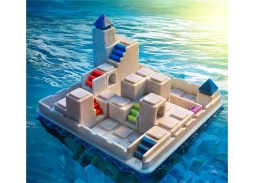 Vind de uitgang ... voor het te laat is! Kan jij ontsnappen uit Atlantis voordat deze mythische stad voor eeuwig onder water verdwijnt? Zoek de kortste weg van bij de hoogste toren tot aan de haven, waar een schip op jou ligt te wachten om je in veiligheid te brengen. Hoeveel treden nog voor je er bent? Atlantis Escape is een compact puzzelspel van Smart Games voor kinderen vanaf 7 jaar met 60 3D-opdrachten en een stevig transparant deksel, handig om overal mee te nemen. Spelregels 1) Plaats de toren op het spelbord zoals aangeduid in de opdracht. Let erop dat de toren in de juiste oriëntatie staat! Je mag enkel de puzzelstukken met trappen gebruiken die bovenaan de opdracht afgebeeld staan. Leg de andere puzzelstukken opzij. Hoe moeilijker de opdracht, hoe meer puzzelstukken je nodig hebt. 2) Gebruik de puzzelstukken met trappen om een weg te maken vanaf de deur van de hoge toren tot aan de trappen aan rand van het spelbord. 3) Er is maar 1 oplossing, die je achteraan in het boekje kan terugvinden.