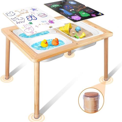 Ontdek de perfecte speelomgeving voor uw kleintje met onze luxe sensorische activiteiten tafel. Deze robuuste houten speeltafel, gemaakt van massief dennenhout, biedt een veilige en creatieve plek waar kinderen van 3 jaar en ouder kunnen zandtaartjes maken, tekenen en experimenteren met water en andere materialen. Met afgeronde hoeken en een stevig ontwerp is deze tafel niet alleen veilig, maar ook klaar voor langdurig spelplezier.