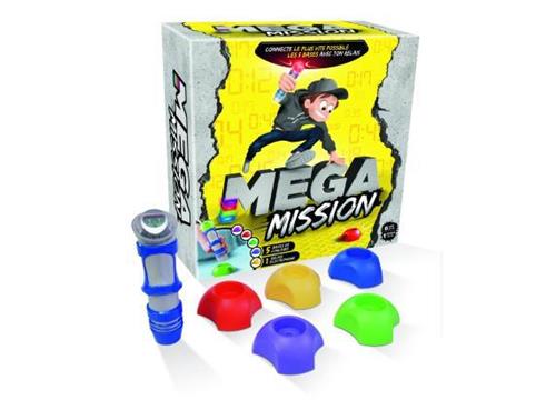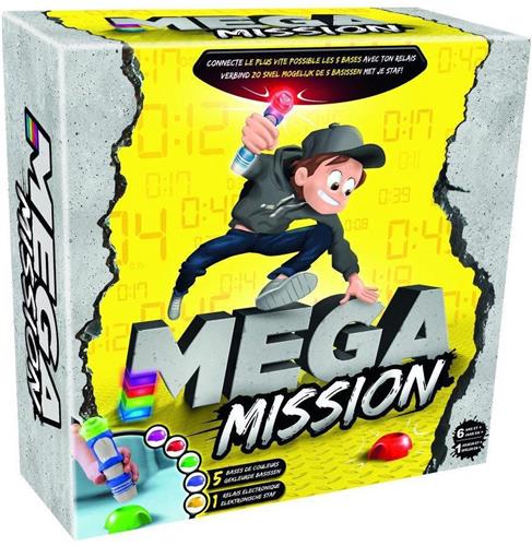 De Spel Mega Mission is een nieuwe generatie behendigheidspel dat kinderen van 6 jaar en ouder uitdaagt om snel te reageren en te handelen. Met een elektronische lichtgevende koker moeten spelers de koker zo snel mogelijk verbinden met de overeenkomende kleuren dankzij 3 spannende spelmodi.