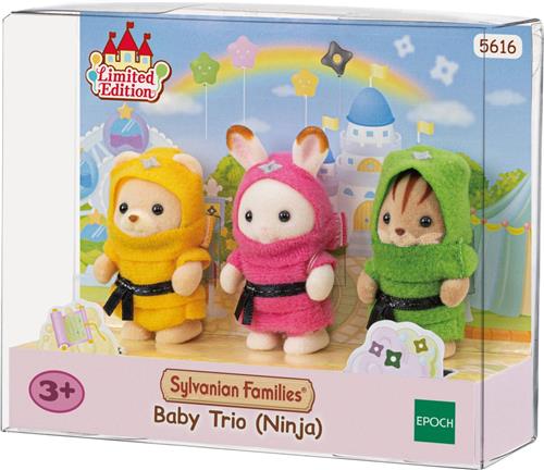 - Bij Bol.com kun je Sylvanian Families 5616 Baby Trio ( Ninja) kopen voor de prijs van € 34,99. Dit is vandaag de goedkoopste webshop.