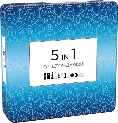 Met de Tactic 5 in 1 Hout kun je genieten van 5 verschillende klassieke spellen in één blikken trommel. Dit kwalitatief hoogwaardige spel bevat schaken, dammen, tic-tac-toe, backgammon en domino. De doos bevat een tweezijdig houten bordspel voor schaken en dammen, evenals een tweezijdig houten bordspel voor backgammon en tic-tac-toe. Daarnaast zijn er houten schaakpionnen, domino's en backgammon-, tic-tac-toe- en damschijven inbegrepen, samen met 2 dobbelstenen en spelregels. Met een verpakkingsgewicht van 1.65 kg is dit spel ideaal voor zowel kinderen als volwassenen om van te genieten. Ontdek urenlang speelplezier met dit veelzijdige en compacte bordspel!