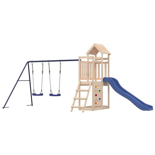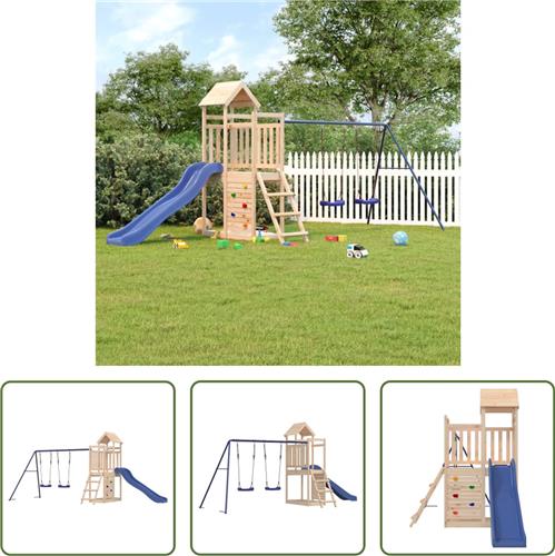 The Living Store Houten Speelhuis met Glijbaan en Dubbele Schommel - 505 x 186 x 214 cm - Massief Grenenhout