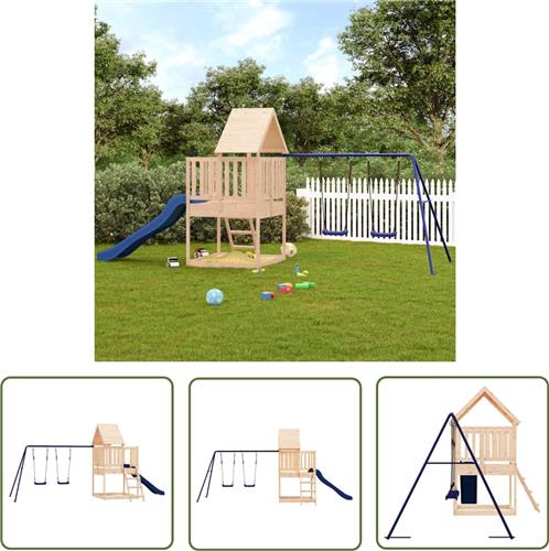 Met een totale afmeting van 564 x 235 x 228 cm en een verpakkingsgewicht van 61.80 kg, is deze speeltoren van het merk vidaXL voorzien van een dubbele schommelset, een golvende glijbaan en een glijbaan als onderdelen van de speeltoestellencombinatie. Met een aanbevolen minimum leeftijd van 18 jaar en een aanbevolen maximum leeftijd van 100 jaar, is dit speeltoestel ontworpen voor veilig en langdurig speelplezier voor kinderen van verschillende leeftijden.