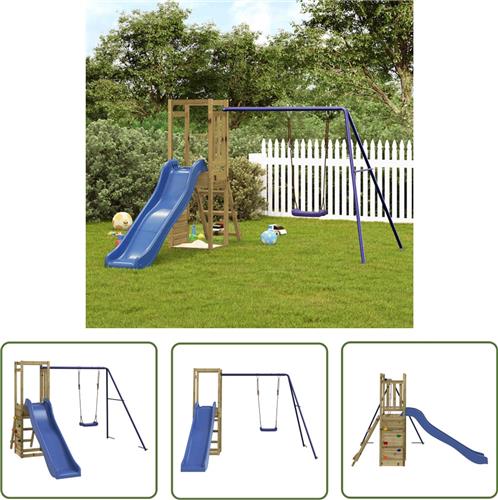 The Living Store Multi-activiteitencentrum - 237 x 321 x 169 cm - Duurzaam grenenhout - Stevig frame - Veilig ontwerp - Inclusief speeltoren - enkele schommel en golvende glijbaan