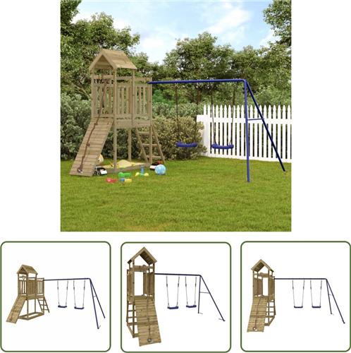 Laat je kinderen eindeloos plezier beleven met het Speeltoestel van The Living Store. Dit houten speelhuis met glijbaan en schommel transformeert jouw achtertuin in een speelparadijs waar fantasierijke avonturen tot leven komen. Gemaakt van duurzaam geïmpregneerd grenenhout, is dit speeltoestel niet alleen stevig en stabiel, maar ook veilig voor uren speelplezier.