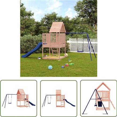 The Living Store Speeltoren - massief douglashout - 494 x 235 x 228 cm - omringende balustrades - houten dak - inclusief enkele schommel en golvende glijbaan