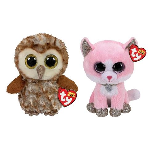 Maak kennis met Percy de Uil en Fiona de Kat, twee schattige knuffeldieren uit de TY Beanie Boo's collectie. Percy is een lieve uil van 15 cm groot, met grote kraalogen en een zachte vacht. Hij staat altijd klaar om geknuffeld te worden en is een perfect vriendje voor jong en oud. Fiona, de roze husky, is ook 15 cm groot en heeft een pluizige vacht waar je niet van af kan blijven. Met haar kwispelende staart en zachte gespin, is ze onweerstaanbaar lief.