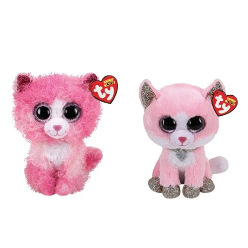 Maak kennis met de schattige Ty Beanie Boo's knuffels, Reagan Cat en Fiona Pink Cat. Reagan is een 15 cm grote roze en witte kat met grote, ronde kraalogen, terwijl Fiona een 15 cm grote husky is met bruine en roze tinten. Beide knuffeldiertjes zijn perfect om mee te knuffelen en willen graag jouw vriendjes worden.