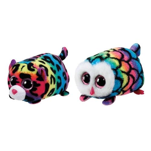 Maak kennis met Hootie de uil en Jelly de luipaard, twee schattige Teeny Ty's knuffels die altijd klaar staan om jouw nieuwe vriendjes te worden. Met hun zachte pluche en vrolijke regenboogkleuren zijn ze perfect om mee te knuffelen en te spelen. Hootie en Jelly zijn elk 10 cm groot en liggen graag naast je als je gaat slapen of avonturen beleeft.