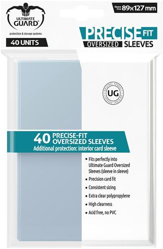 - Bij Bol.com kun je Ultimate Guard Precise-Fit Sleeves Oversized Transparent (40) kopen voor de prijs van € 5,89. Dit is vandaag de goedkoopste webshop.