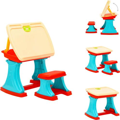 De kleurrijke set is niet alleen visueel aantrekkelijk, maar ook zeer functioneel. Het bureau is uitgerust met opbergruimte onder het bureaublad, perfect voor het opbergen van al hun creatieve materialen zoals kleurpotloden, verf en papier. Bovendien maakt het bijgeleverde krukje het voor kinderen comfortabeler om hun creaties te maken.