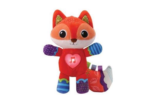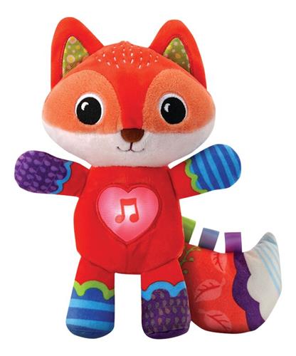 VTech Dierenvriendjes Vosje Knuffel is het perfecte vriendje voor het slapengaan! Druk op de knipperende hart-toets om lieve zinnetjes, rustgevende melodietjes, gezongen liedjes en geluiden te horen. Het rustgevende lichtje knippert langzaam mee met de muziek en geluiden. De verschillende materialen en texturen stimuleren de tastzin. Dit zachte vosje stimuleert interactief spel en knuffeltijd. Het Fox-speelgoed met muziek is kleurrijk, duurzaam en wasbaar. Met regelbaar volume en automatische uitschakeling is het ideaal voor baby's van 0 tot 3 jaar.
