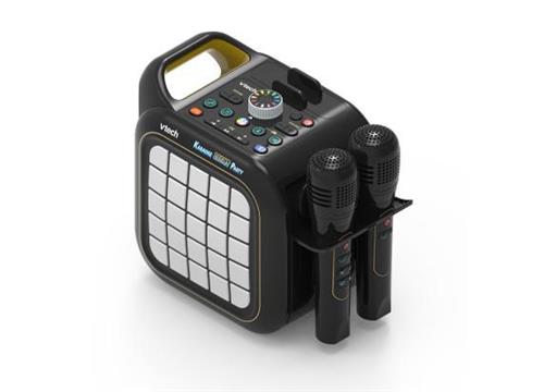 Ontdek de VTech Karaoke Light Party - de ultieme karaokeset voor jong en oud! Met deze geweldige set kun je eindelijk je favoriete liedjes meezingen via een Bluetooth®-verbinding met je smartphone. Maak je klaar voor een feestje en laat je stem horen! De set wordt geleverd met twee draadloze microfoons, zodat je alleen of samen met vrienden kunt zingen. Geen zorgen over de zang van de artiest, want je kunt deze zelfs verminderen om zelf de ster van de show te worden!