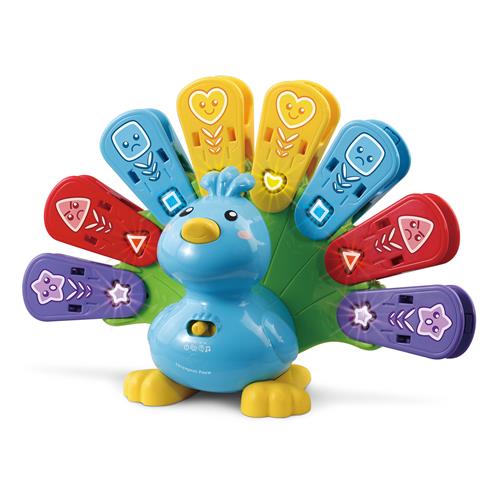 VTech Verenpret Pauw is een kleurrijk en educatief babyspeelgoed dat de zintuigen van jouw baby prikkelt. Met zijn vrolijke kleuren en geluiden zal deze speelgoedpauw de aandacht van je kleintje zeker weten te trekken. De VTech Verenpret Pauw is gemaakt van hoogwaardig plastic en is CE-gecertificeerd, waardoor je verzekerd bent van een veilig speelgoed.