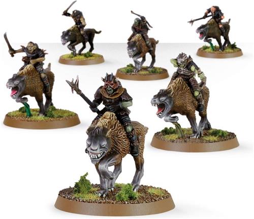 De set bevat 6 plastic Warg Riders, elk gewapend met hun eigen wapens. Twee van hen dragen speren, twee hebben bogen en de overige twee zijn bewapend met zwaarden. De gedetailleerde modellen worden geleverd met ronde bases van 40 mm, wat zorgt voor stabiliteit en een realistische weergave op het speelveld.