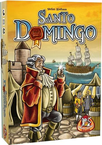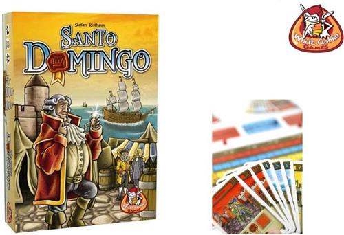 Santo Domingo is een verrassend leuk spel voor 2 tot 6 spelers. Het fraaie artwork is gemaakt door Klemens Franz en het spel is bedacht door Stefan Risthaus. Het thema is de scheepvaart en handel in Santo Domingo in de 16e eeuw. Iedere speler krijgt 8 actiekaarten. Met elke kaart kun je een afzonderlijke actie uitvoeren zoals bijvoorbeeld het ontvangen of handelen in goederen. Maar let op: zet je actiekaarten slim in en schat goed in welke kaarten je tegenstanders kiezen. Soms pakt een actie anders uit doordat meerdere spelers dezelfde actie hebben gekozen. Wie het slimste de 8 verschillende actiekaarten uitspeelt en zijn medespelers het beste kan inschatten, wordt de winnaar van dit leuke spel. Geschikt voor de hele familie.