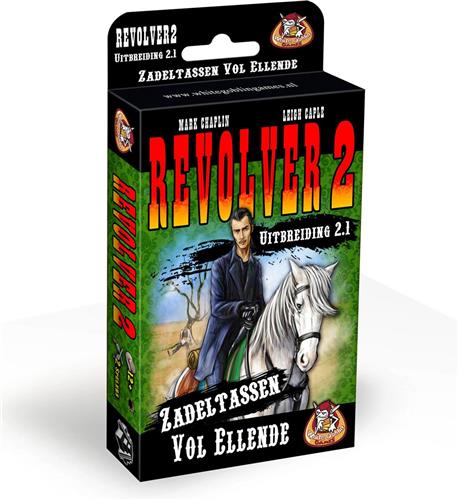 Zadeltassen vol ellende is een Nederlandstalige uitbreiding voor het kaartspel Revolver 2. Aangetrokken door aantrekkelijke vooruitzichten van Generaal Mapache en door hem gestolen schatten betreden vier nieuwe revolverhelden het strijdveld. Voor een handvol peso's sluiten deze schurken zich aan bij de zelfbenoemde generaal en wachten ze zijn duistere orders af. Tegenover deze desperado's staat een groep van cowboys, gehaaide kaartspelers en kruimeldieven die zijn samengebracht om de eerbare Padre te helpen. Aan het einde van de dag zal slechts één partij de overwinning claimen. Ben jij dat?
