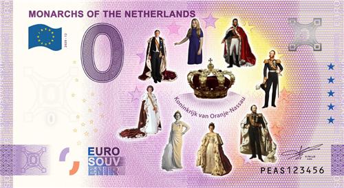 0 Euro biljet 2020 - Vorsten van Nederland - Koninkrijk van Oranje-Nassau KLEUR