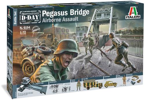 Met dit modelbouwpakket van Italeri kun je op schaal 1:72 de legendarische Pegasus Bridge nabouwen. Deze set is uitgevoerd ter herdenking van het 75-jarig jubileum van D-Day in 1944-2019. Het modelbouwpakket bevat alle benodigde onderdelen om de brug en de omliggende slagveldscènes met grote precisie na te bouwen. Duik in de geschiedenis en herbeleef het belangrijke moment van de Britse luchtlandingsoperatie tijdens de invasie van Normandië.