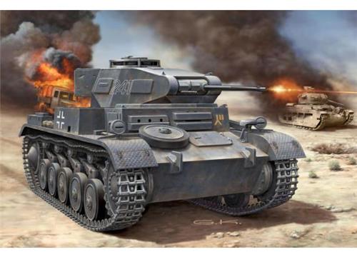 De Revell 1/76 Panzer II Ausf. F is een nauwkeurig schaalmodel van dit iconische Duitse gevechtstank. Het model weerspiegelt de historische relevantie van dit voertuig uit de Tweede Wereldoorlog, met versterkt pantser aan de voor- en zijkant en een snelheid van 40 km/u. De set bevat 2 figuren, een diorama-plaat en een replica van ruïnes, waardoor je een realistische scène kunt creëren.