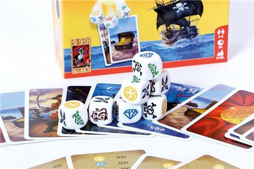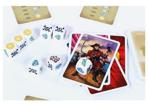 | Verpakkingsinhoud | Inhoud: 8 dobbelstenen 35 piratenkaarten 5 overzichtskaarten De spelregels |