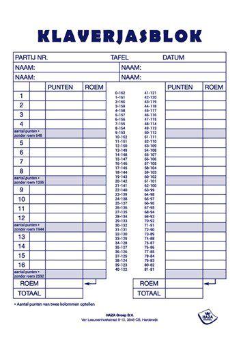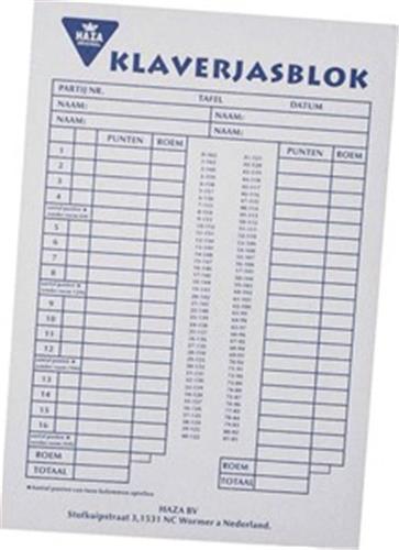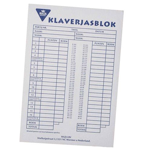 - Bij Spellenrijk kun je 1x Scoreblokken Klaverjassen 50 vellen - Kaartspellen - Familiespelletjes - Klaverjassen score notitieblok kopen voor de prijs van € 2,95. Dit is vandaag de goedkoopste webshop.