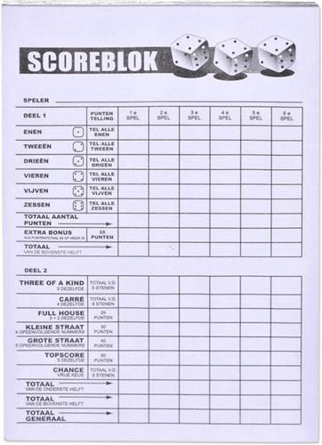 2x Scoreblok Yahtzee - inclusief 12 dobbelstenen - dobbelspel
