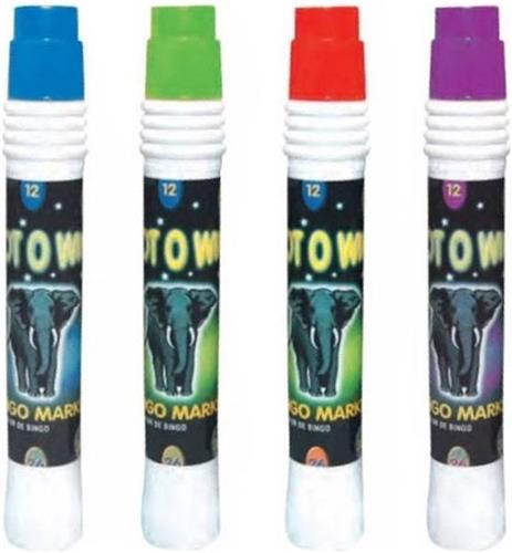 Met deze handige bingo stiften zet u snel en makkelijk stippen op de nummers met bingo. Inhoud: 4 stiften. De Bingostiften komen in de kleuren blauw, groen, paars en rood. Verder zijn de stiften gemaakt van kunststof en zijn ze geschikt voor zowel kinderen als volwassenen. Ze zijn ideaal voor het spelen van bingo met een groep tot 4 personen. Deze set bevat: 1x Bingostift rood, 1x Bingostift blauw, 1x Bingostift groen en 1x Bingostift paars. Let op: deze stiften zijn geen speelgoed en daarom niet geschikt voor kinderen onder de 14 jaar.