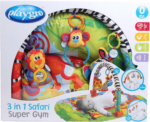 Met kleurrijke speeltjes, zachte materialen en leuke geluiden zal je baby zich geen moment vervelen. De Safari Super Gym is voorzien van een comfortabel liggedeelte, perfect voor speeltijd en dutjes.