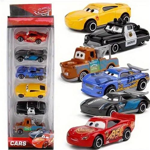 6-Delige Set Raceautos met Opbergdoos Mini Auto Modellen voor Decoratie & Cadeau Disney Cars