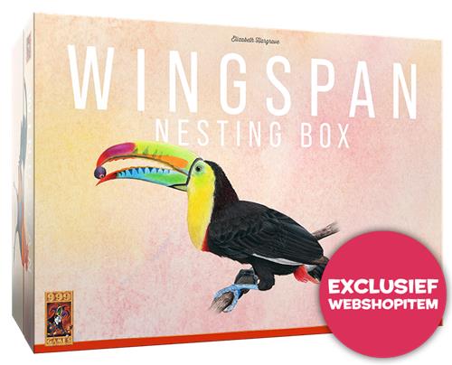 Haal het maximale uit je Wingspan-spelervaring met de Nestingbox van 999 Games. Deze praktische opbergdoos is exclusief verkrijgbaar op onze webshop en stelt je in staat om alle kaarten, spelonderdelen en ander materiaal van Wingspan en de uitbreidingen ervan overzichtelijk op te bergen. Met de individueel genummerde dubbellaagse doos (430x306x207 mm), die perfect past in een Ikea Kallax kast, blijft jouw speelmateriaal netjes georganiseerd en beschermd.