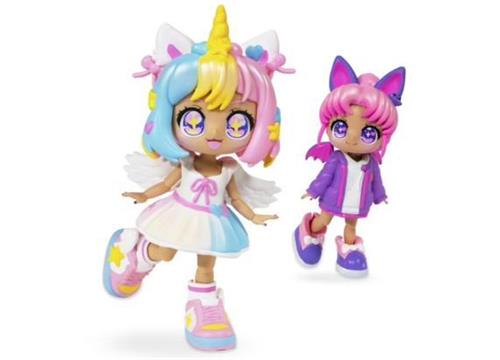 Ontdek de magische wereld van de Aanpasbare pop - BANDAI - Animakii - HEA26348 - Eenhoorn en vleermuis! Met deze unieke set kun je meer dan 32 verschillende combinaties maken door de vier gezichten, twee kapsels, twee outfits en twee paar schoenen te mixen en matchen. Laat je creativiteit de vrije loop en creëer eindeloze lookcombinaties, waardoor elke speelervaring weer verrassend en nieuw is!