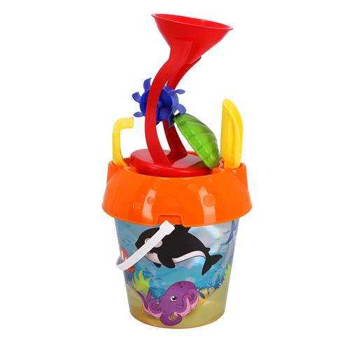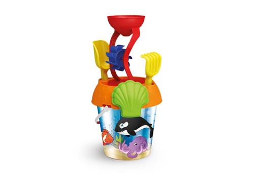De emmer is voorzien van een vrolijk oceaanthema en de zandmolen voegt een leuke draai toe aan het zandspel. Met de verschillende accessoires kunnen kinderen hun eigen fantasiewereld creëren en zich uren vermaken in de zandbak of op het strand.