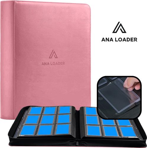 Ana toploader map roze / Trading cards verzamelmap met rits sluiting / Geschikt voor 252 kaarten / Toploader binder / Top loader map geschikt voor trading cards
