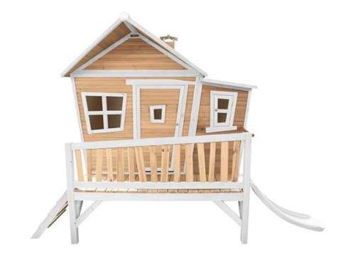 AXI Emma Speelhuis in Bruin/Wit - Met Verdieping en Witte Glijbaan - Speelhuisje op palen met veranda - FSC hout - Speeltoestel voor de tuin