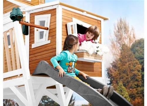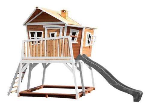 AXI Max Speelhuis in Bruin/Wit - Met Verdieping, Zandbak en Grijze Glijbaan - Speelhuisje voor de tuin / buiten - FSC hout - Speeltoestel voor kinderen