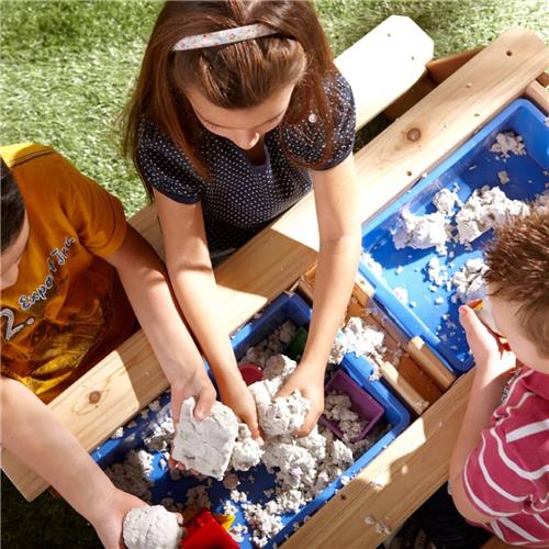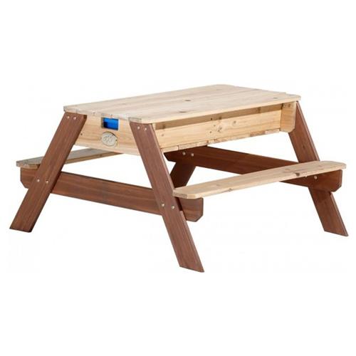 De Nick Zand & Water Picknicktafel Bruin van AXI is een multifunctionele picknicktafel. Nick heeft onder het afneembare tafelblad een verborgen ruimte met twee blauwe bakken. Deze blauwe bakken kunnen gevuld worden met zand en/of water, maar je kunt er natuurlijk ook speelgoed in opbergen. Daarnaast zijn de bakken uitneembaar, zodat deze eenvoudig schoongemaakt kunnen worden. De klassieke combinatie van zand en water is altijd een succes bij kinderen! Uitgespeeld? In een handomdraai verander je de zand en water tafel weer in een picknicktafel waaraan de kinderen kunnen knutselen, tekenen of genieten van wat lekkers. Geschikt voor kinderen van 3 tot en met 10 jaar oud.