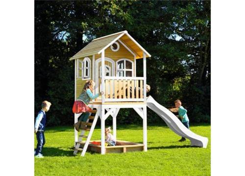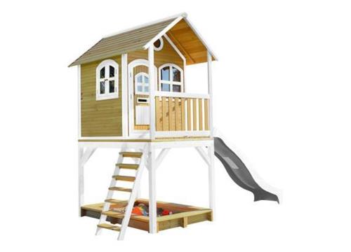 De toevoeging van een verdieping geeft dit speelhuisje een extra dimensie, waardoor kinderen nog meer speelplezier zullen beleven. De zandbak zorgt voor creatief spel en dankzij de witte glijbaan kunnen kinderen op een veilige manier van de verdieping naar beneden glijden.