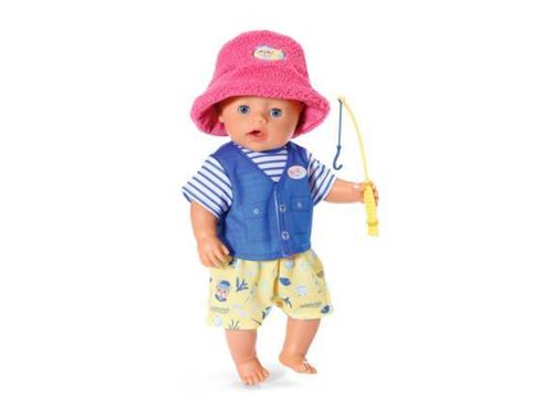 Met het BABY born Beer Vissersoutfit kan je pop van 43 cm er stijlvol uitzien tijdens het vissen. Het outfit wordt compleet geleverd met een schattige hoed om de look af te maken. Gemaakt van hoogwaardig kunststof en textiel.