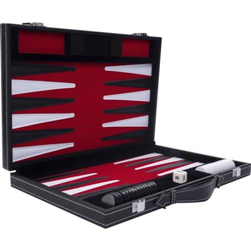 | Verpakkingsinhoud | Backgammon 11 inch, rood/ zwart/ wit gestikt. In zwarte kunstlederen koffer met handvat. |
