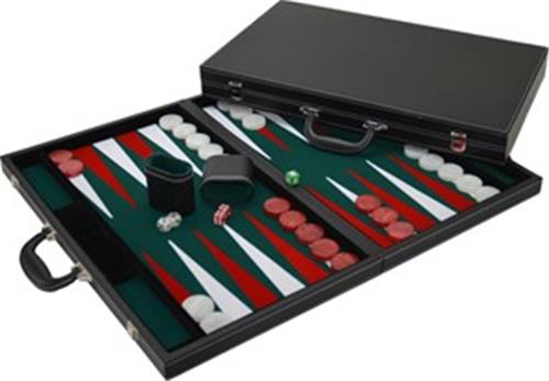 Backgammon zwart Luxe groen/rood/wit 46cm.