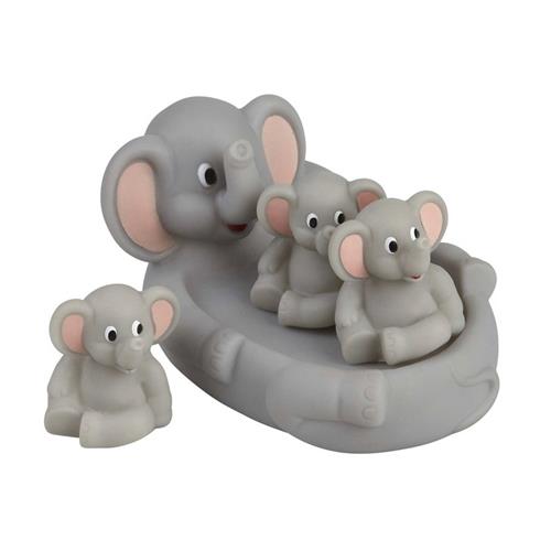 De badspeelset olifanten 4-delig is het perfecte badspeelgoed voor kinderen en baby's. Deze set bestaat uit een grote grijze drijvende olifant met drie schattige kleine olifantjes. De grote olifant heeft een lengte van ongeveer 16 cm en is ideaal voor urenlang speelplezier in bad.