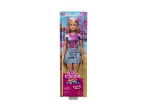 Laat je creativiteit de vrije loop met de Barbie Mysteries: Beach Detectives pop, geïnspireerd op de nieuwste avonturen van Barbie. Deze iconische modepop, ook wel bekend als Barbie 'Malibu', komt tot leven in haar trendy tie-dye topje en zomerse jeans shorts, compleet met roze stiksels die haar stijlvolle uitstraling versterken. De hoge sneakers en bijpassende zonnebril maken het plaatje helemaal af. Kinderen van 3 jaar en ouder kunnen volop genieten van het naspelen van spannende scènes of het bedenken van geheel nieuwe mysteries!