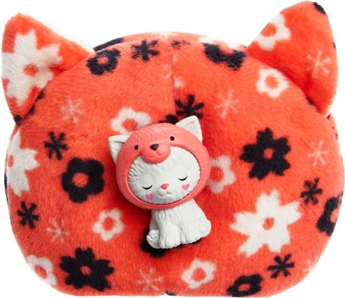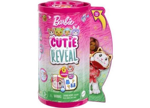 De Barbie Cutie Reveal Pop - 13,9 cm - Kitten Rode Panda - Barbiepop is een schattige toevoeging aan elke speelgoedcollectie. Met een lengte van 13 cm en een breedte van 4 cm is deze pop ideaal voor kinderen vanaf 3 jaar. De pop maakt geen geluid en is gemaakt van duurzaam kunststof, waardoor hij niet wasbaar is. Hij werkt niet op batterijen en heeft geen voedingstype nodig.