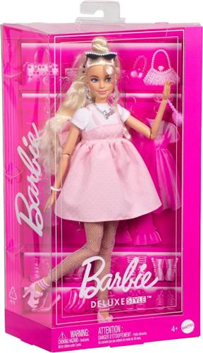 Maak kennis met de betoverende Barbie Deluxe Stijl pop in een pastelroze babydolljurk! Deze Barbiepop straalt glamour en stijl uit, helemaal in lijn met de nieuwste modetrends. Met haar golvende blond haar en sprankelende accessoires is ze klaar om te schitteren op allerlei glamoureuze gelegenheden. Ze is het perfecte model om de Barbiecore stijl te demonstreren met haar opvallende outfit en bijpassende accessoires.