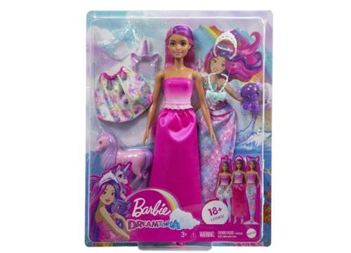 De Barbie Dreamtopia Ballerina Zeemeermin en Eenhoorn Barbiepop is een veelzijdige pop die perfect is voor avontuurlijke en fantasierijke kinderen. Met verschillende kledingstukken en accessoires kan deze Barbiepop transformeren om op het land, in de zee en zelfs in de lucht te spelen. De set bevat onder andere een zeemeerminstaart, twee rokken, themahoofdbanden, een ketting, een schattige draak en een eenhoorn voor extra magische speelmomenten.