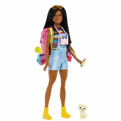 | Verpakkingsinhoud | Inhoud:'Brooklyn' Barbie pop (29 cm) met outfit, schoenen en zonnebril, 1 puppyfiguur, 1 slaapzak, 1 rugzak, 1 camera, 1 zonneklep, 1 notitieboekje, 1 pen, 1 make-up- of toilettas, 1 zaklamp, 1 waterfles, 1 tussendoortje , 1 tandenborstel en 1 tube tandpasta. |